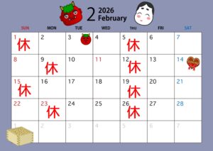 2月11日(水)建国記念の日 通常通り営業いたします。